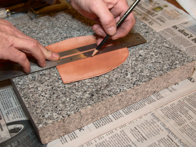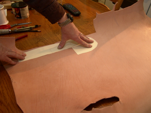 Now we use that pattern to trace the outline onto our leather.