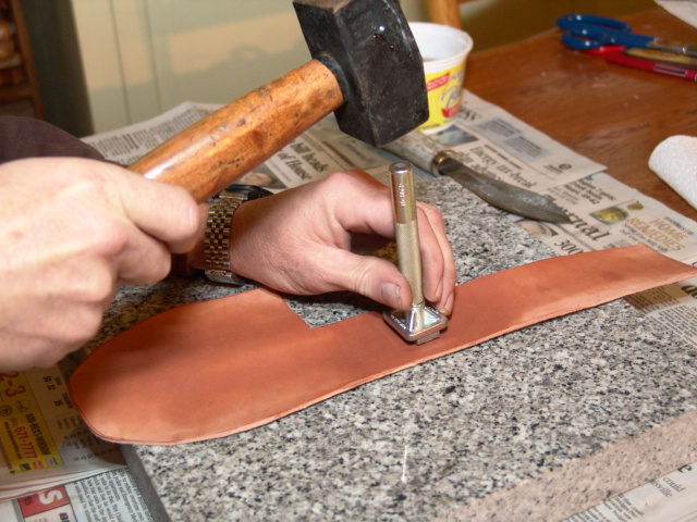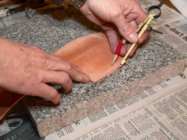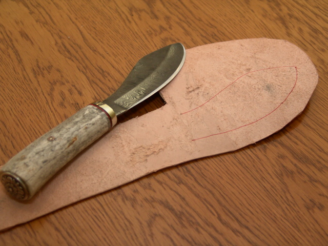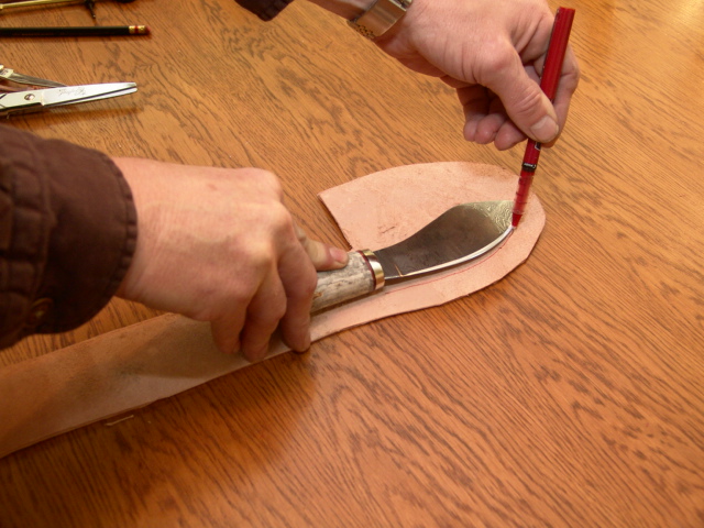 Now I use the knife to mark where my blade and welt will be and to check the fit.