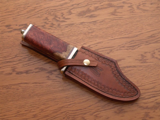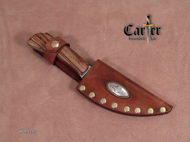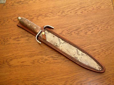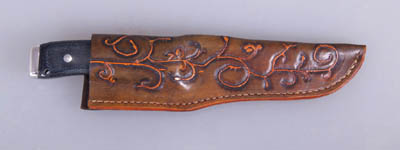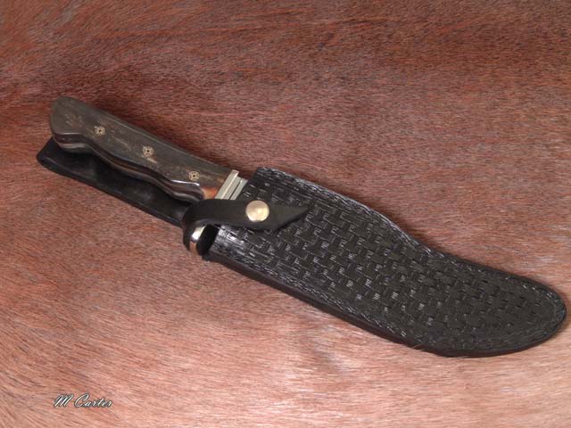 Carter Crafts can make a custom leather sheath for your knife. My sheaths are entirely hand made and hand stitched using a double stitch that will not unravel if a single stitch is broken. We use top quality leather and sometimes exotic hides including Ostrich, Stingray, African Toad, Shark Skin, Alligator, and Snake Skin.