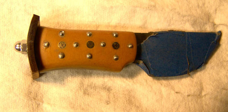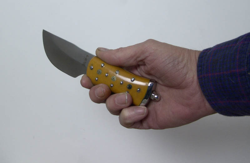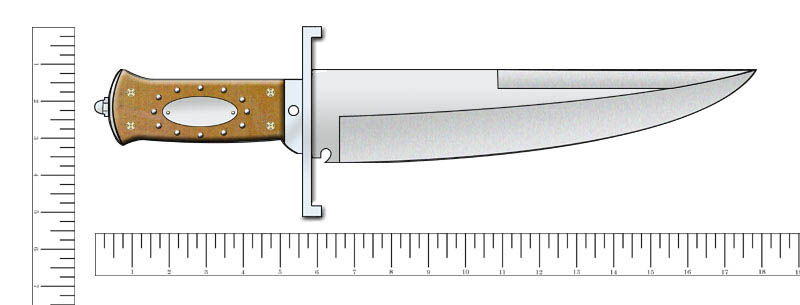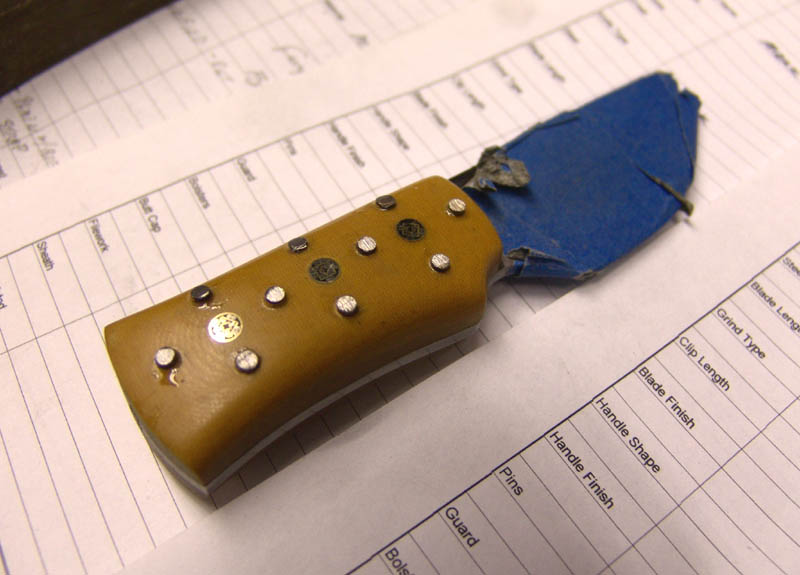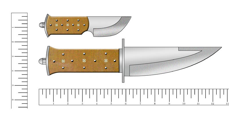 As you can see, we made some changes, most notably adding the stainless steel shield in the handle of the Bowie. The customer honored and flattered me by requesting that I etch my signature on the shield.