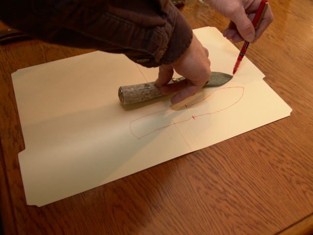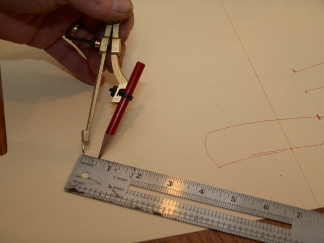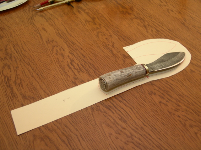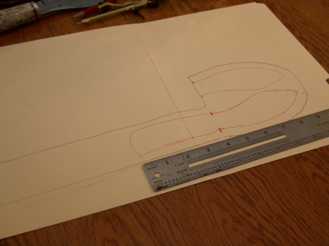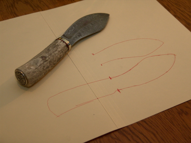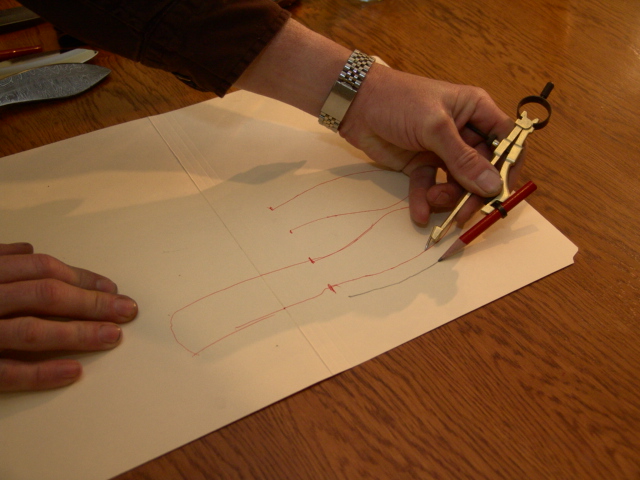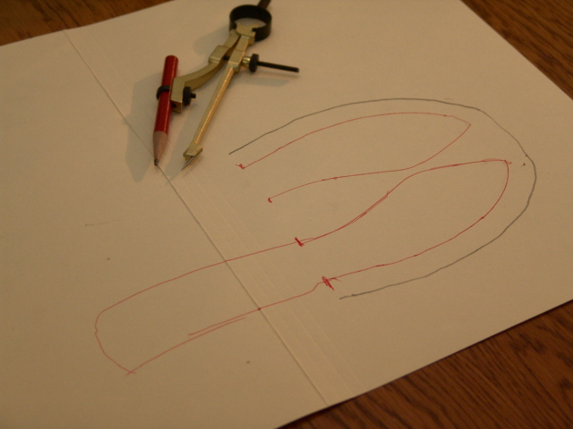 Now I just trace around the knife outline following the outline with the metal point of the compass.