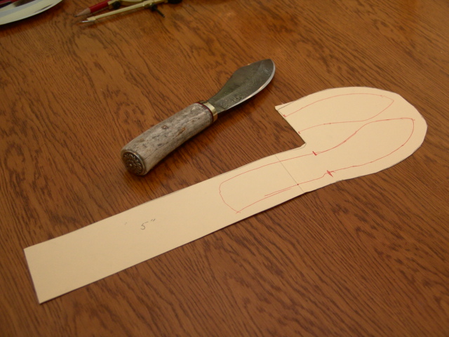 The belt loop as seen here is just a little long so I will shorten it a bit when I trace this pattern onto the leather.