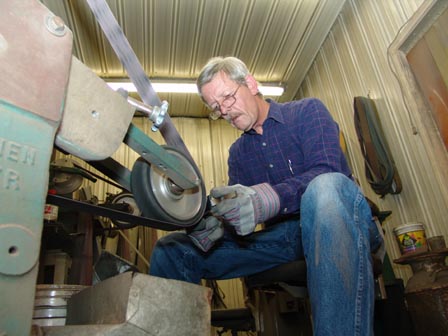 the guard and handle using a belt grinder.