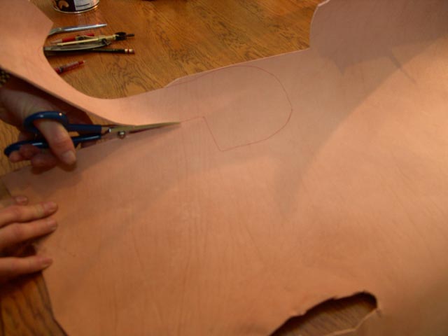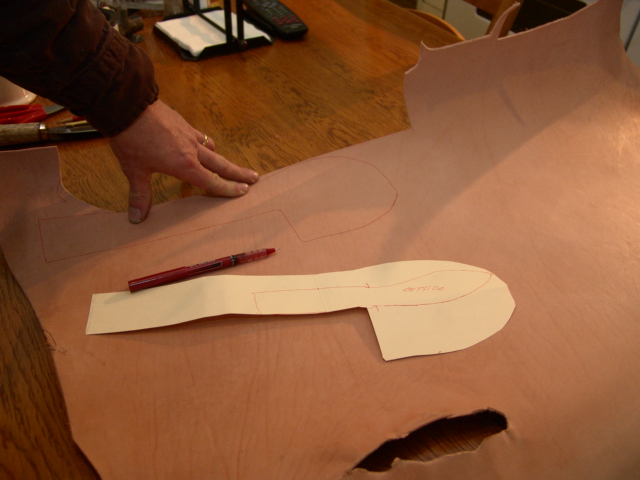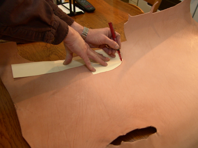 Now we use that pattern to trace the outline onto our leather.