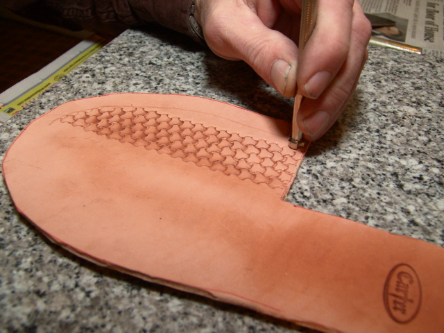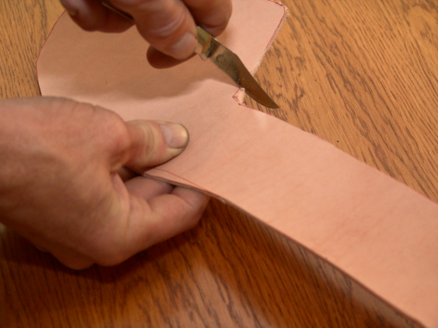 Now I use the knife to mark where my blade and welt will be and to check the fit.