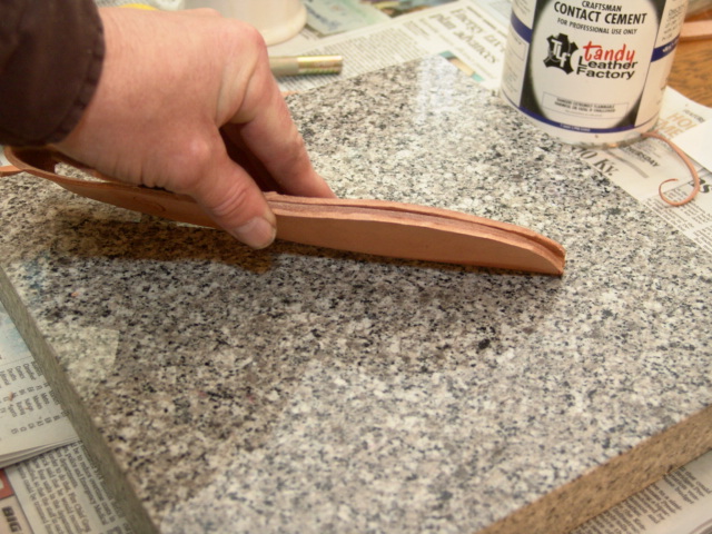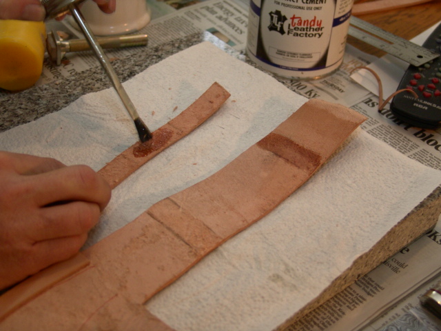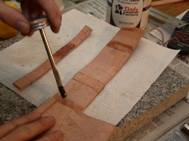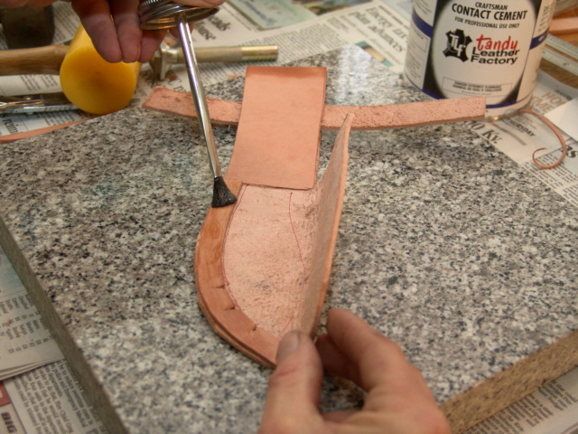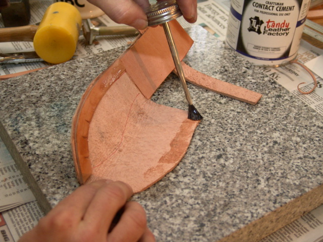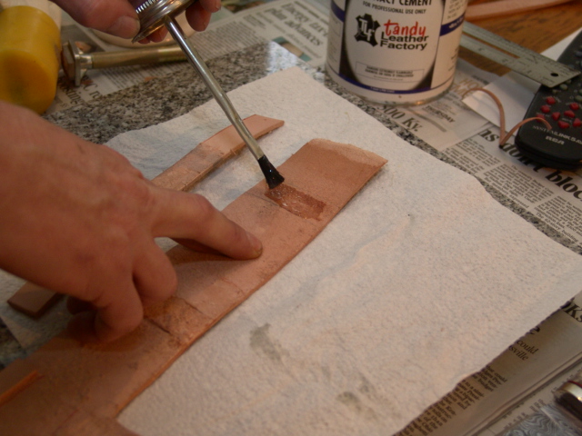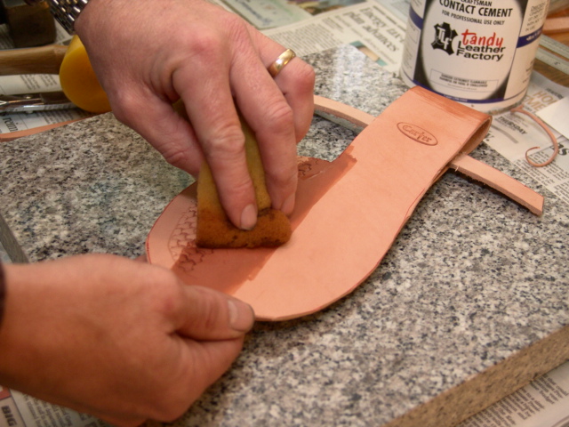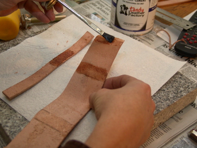 Now put leather cement on both parts and let it sit until it is not tacky.