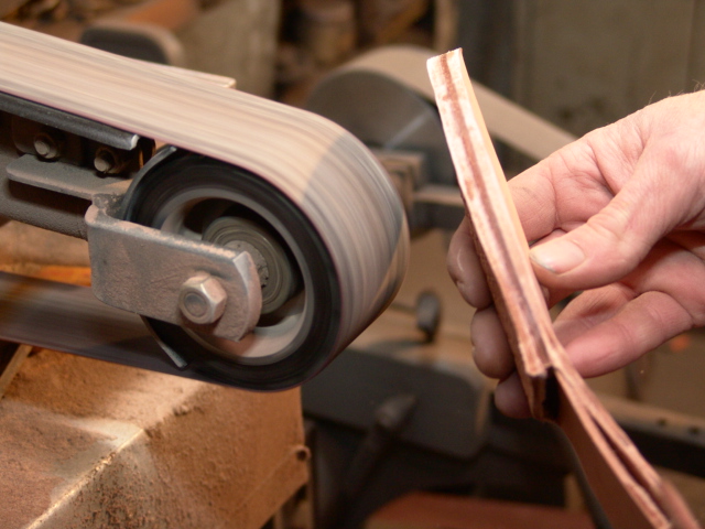 I use a small belt sander to even the edges and do my final shaping of the sheath.