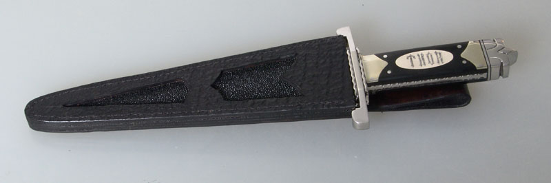 "Thor" is finally finished and shipped to the customer. I feel bad that this one took so long but I really like how it turned out. We topped it off with a sharkskin sheath with stingray inlays. I hope Tom thinks it was worth the wait.