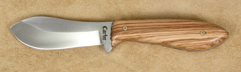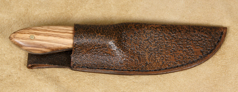 Zebrawood handle with Mosaic Pins. Molded leather pouch sheath. $75 US - SOLD
