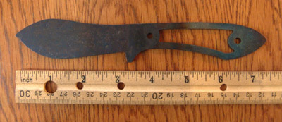 Blade: Full tang,3 1/2 inch long, 1 1/4 inch wide, 1/8 in thick carbon steel.